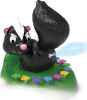 Obsah: 1 herní základna se skunkem, 1 kostka, návod k použití (pro 2 a více hráčů) Sejměte víčko ze základny a naplňte nádržku čerstvou, čistou vodou. Stáhněte ocas jemně dolů, dokud se nezaklapne v dolní poloze. Sejměte kostku z boku základny. Jste připraveni hrát! Pokud skunk nevystříkne vodu poté, co hráč stiskl správný počet květin, je hráč v bezpečí a hra pokračuje po směru hodinových ručiček. Rozměry: 28,6 x 28,6 x 16,5 cm